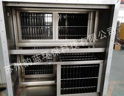 含油煙顆粒物的廢氣吸入高低壓板式末端廢氣處理設(shè)備后,其中部分較大的有霧滴、油污顆粒在均流板上由于機械碰撞、阻留而被捕集。
